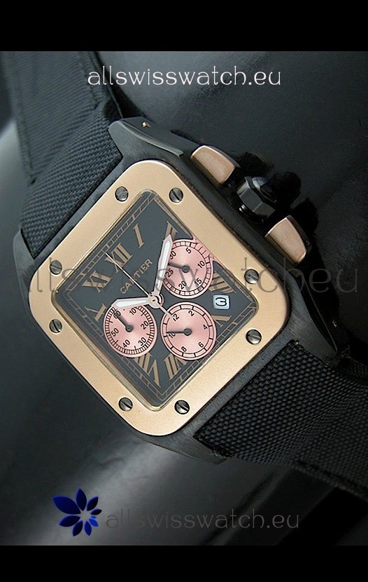 Cartier Santos Japanese Replica Watch in Black Dial