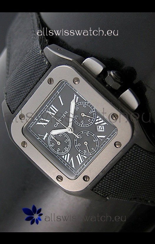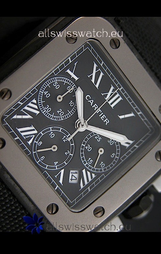 Cartier Santos Japanese Replica Watch in Black Dial