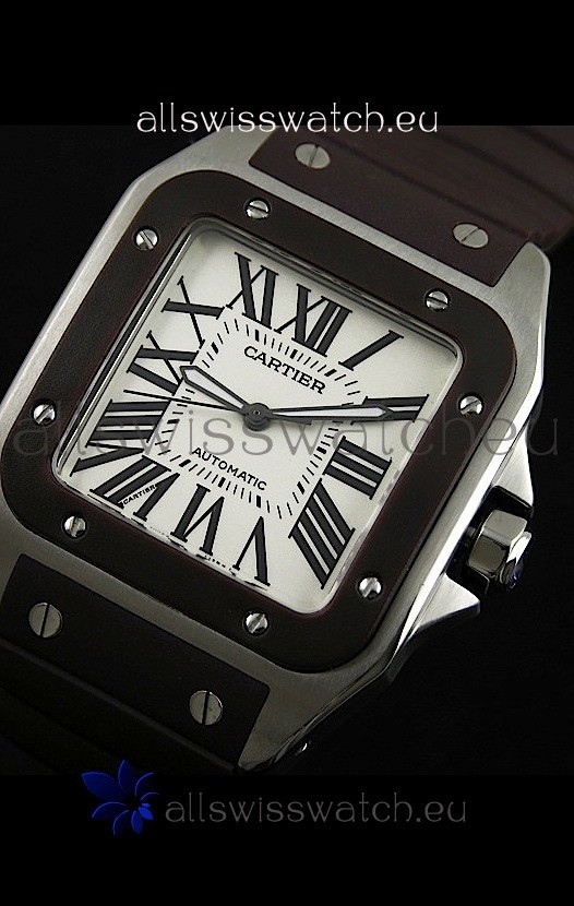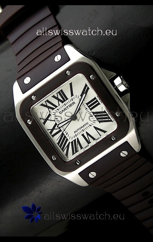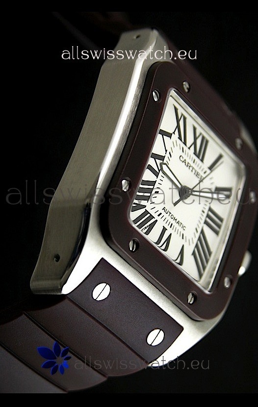 Watch name: Cartier Santos Swiss Replica Automatic Watch in Brown Strap