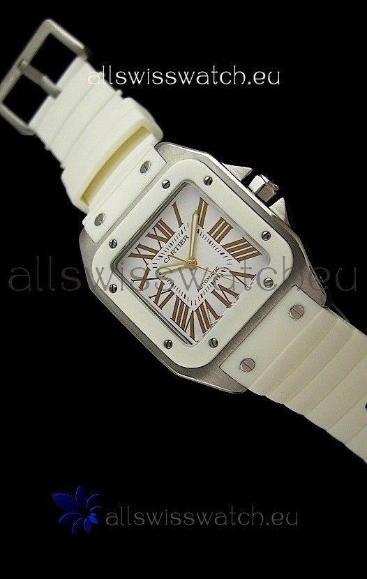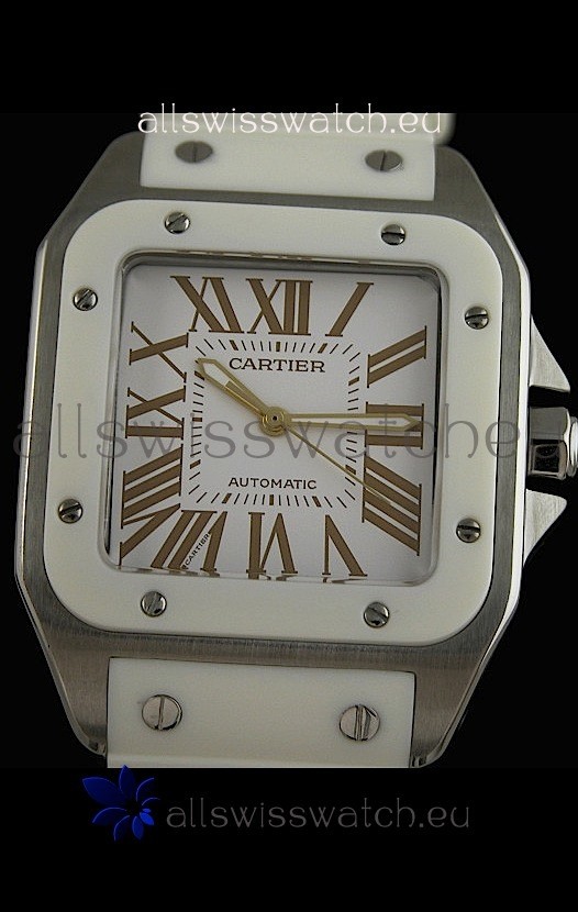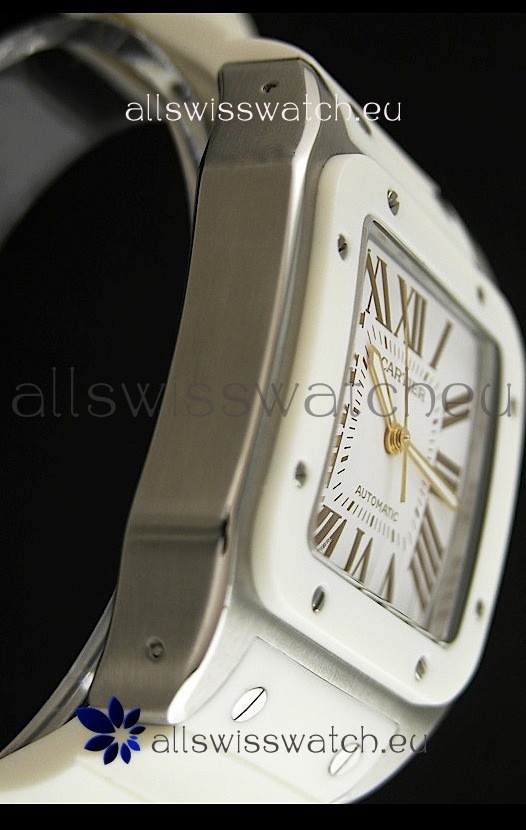 Cartier Santos Swiss Replica Automatic Watch in White Strap