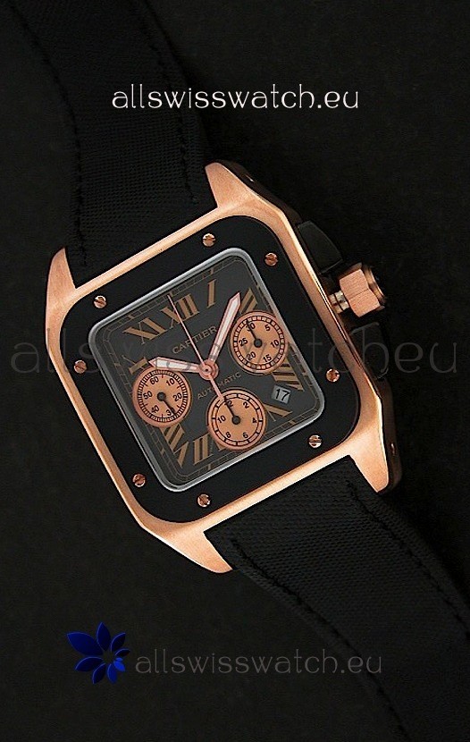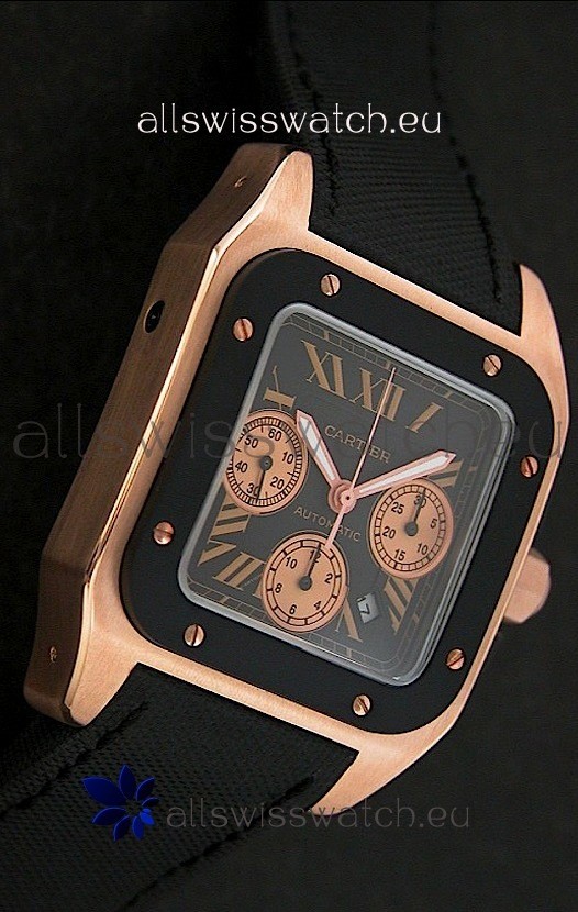 Cartier santos Swiss Replica Watch in Black Dial