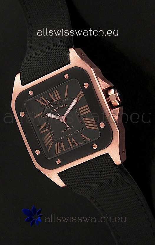 Cartier Santos Swiss Replica Watch in Black Dial