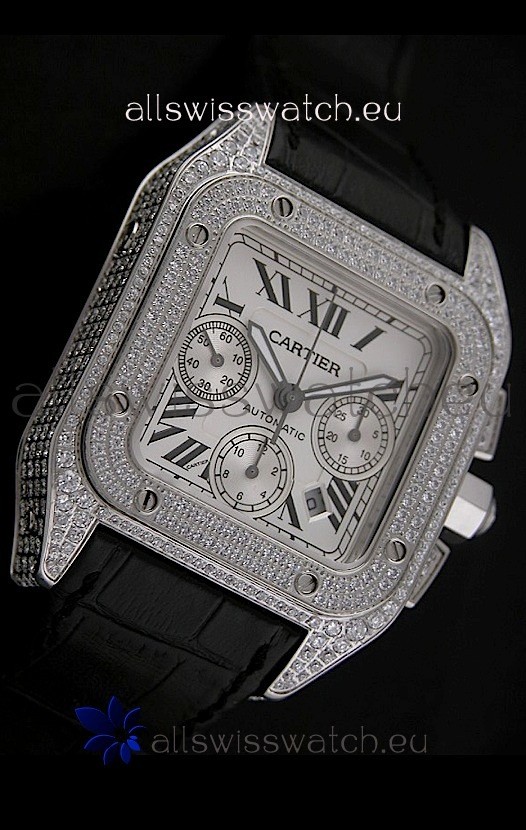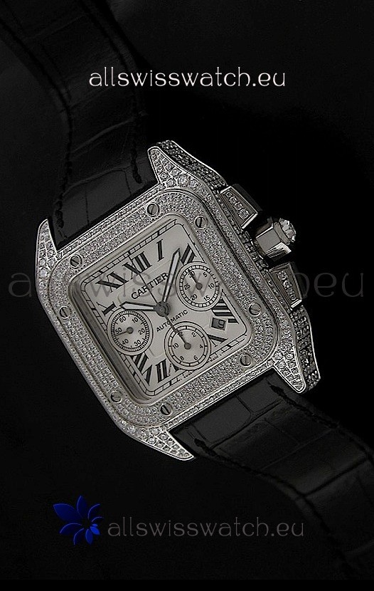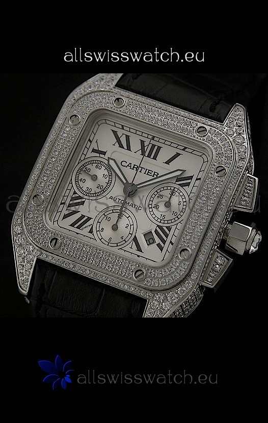 Cartier Santos Swiss Replica Watch with Diamonds Embedded Casing