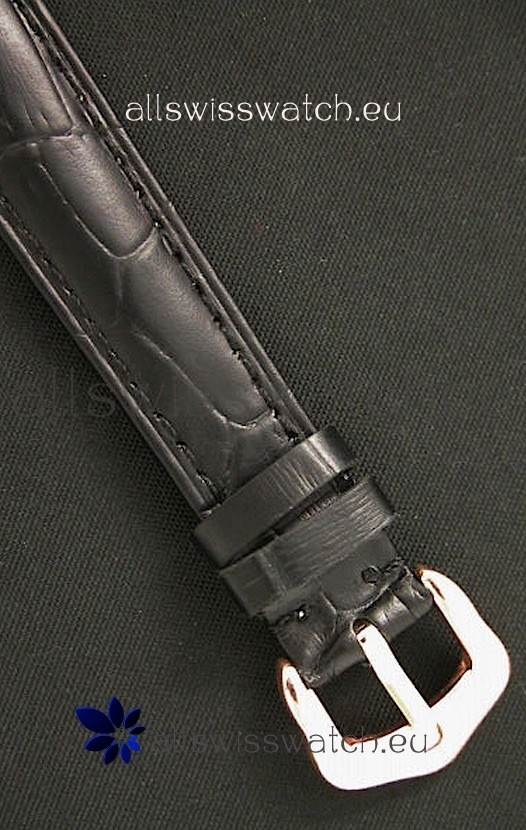 Strap: Black Leather Strap with Insignia Tang Buckle