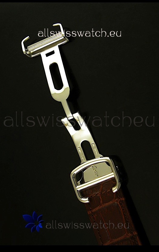 Genuine Leather Strap with Cartier Markings and Engravings with Double Folding Clasp