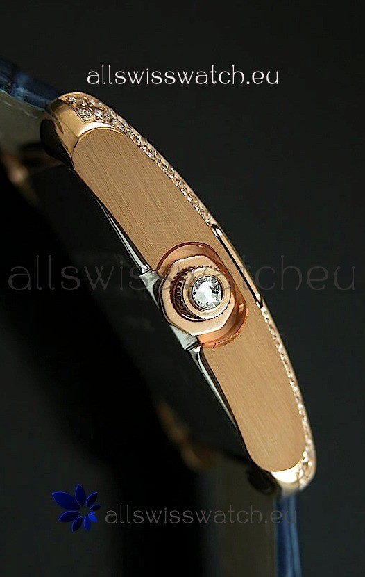 18K Gold Plating on 440 Solid Stainless Steel Case with High Quality Swiss Cut Diamonds Crested Dial and Bezel