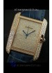 Cartier Tank Anglaise Ladies Replica Watch in Gold Case/Purple Strap