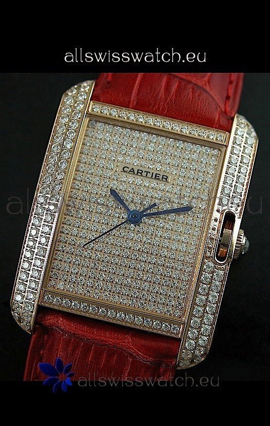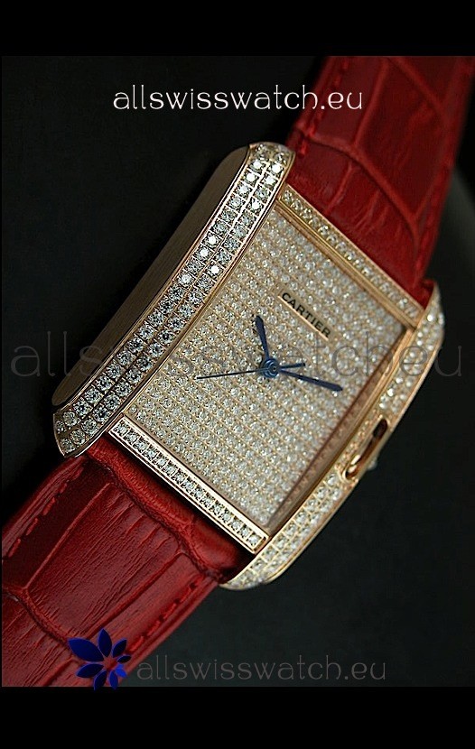 You're reviewing: Cartier Tank Anglaise Ladies Replica Watch in Gold Case/Red Strap