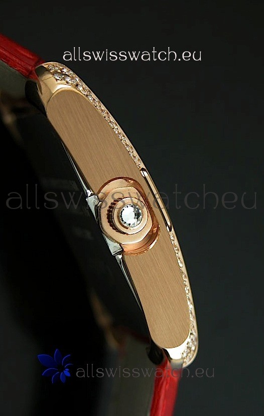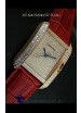 Cartier Tank Anglaise Ladies Replica Watch in Gold Case/Red Strap
