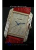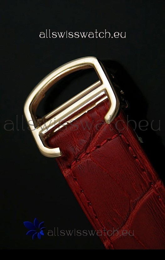 Genuine Red Leather Strap equipped with Folding Clasp and Cartier Markings/Engravings
