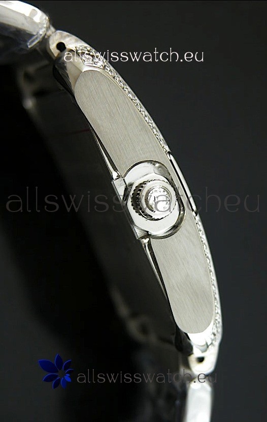 440 Solid Stainless Steel Case with High Quality Swiss Cut Diamonds Crested Dial and Bezel