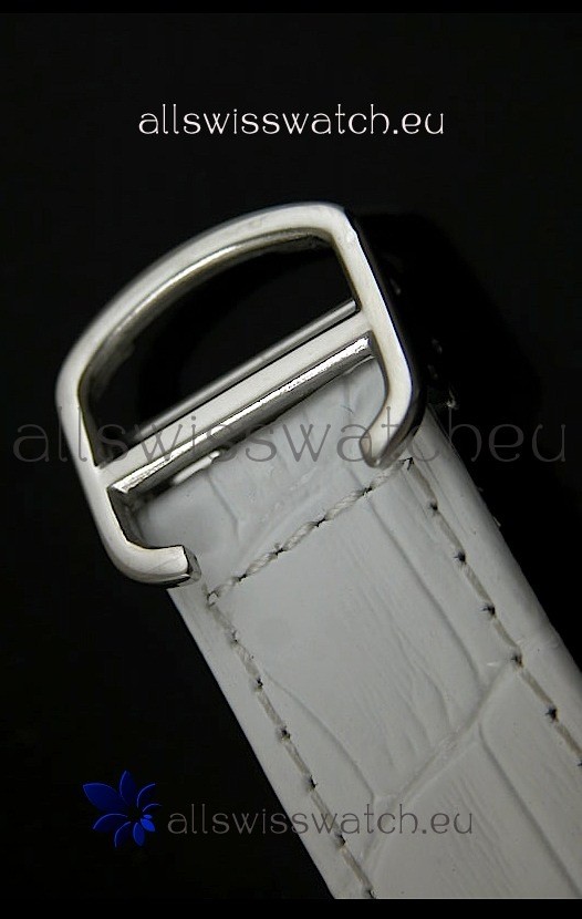 Genuine White Leather Strap equipped with Folding Clasp and Cartier Markings/Engravings