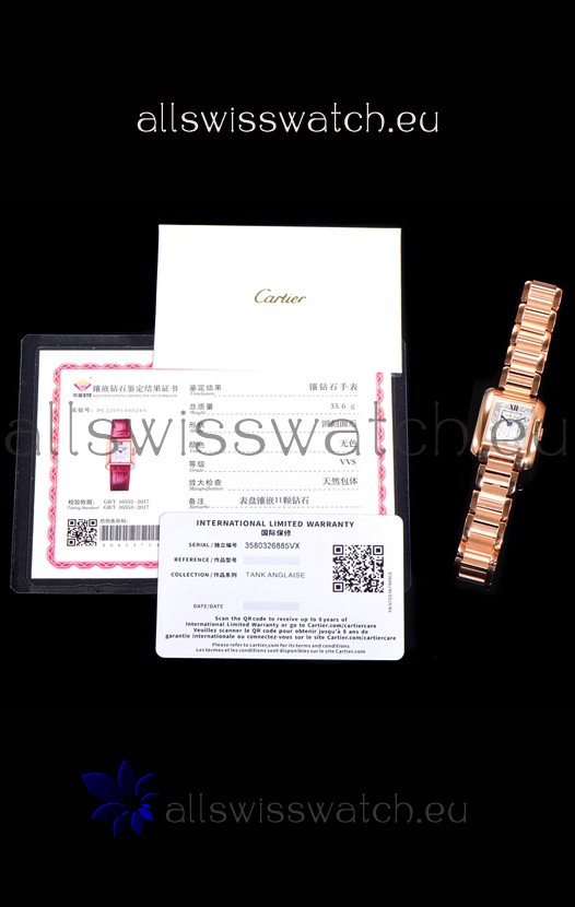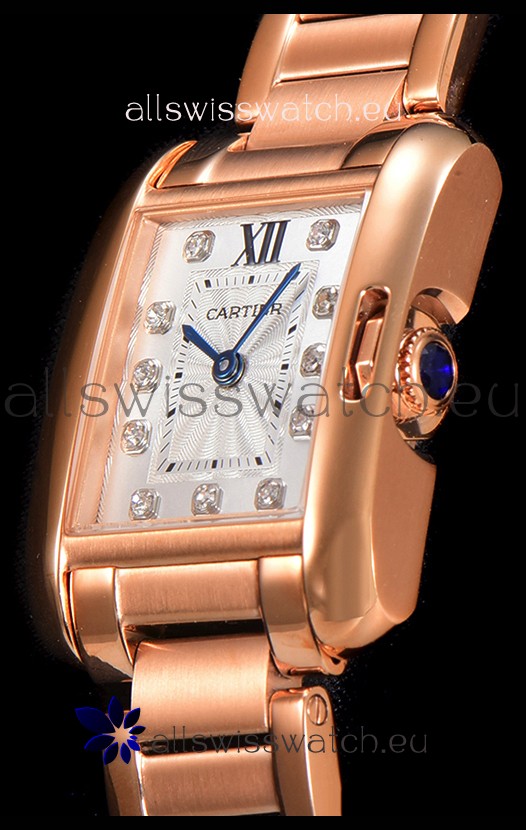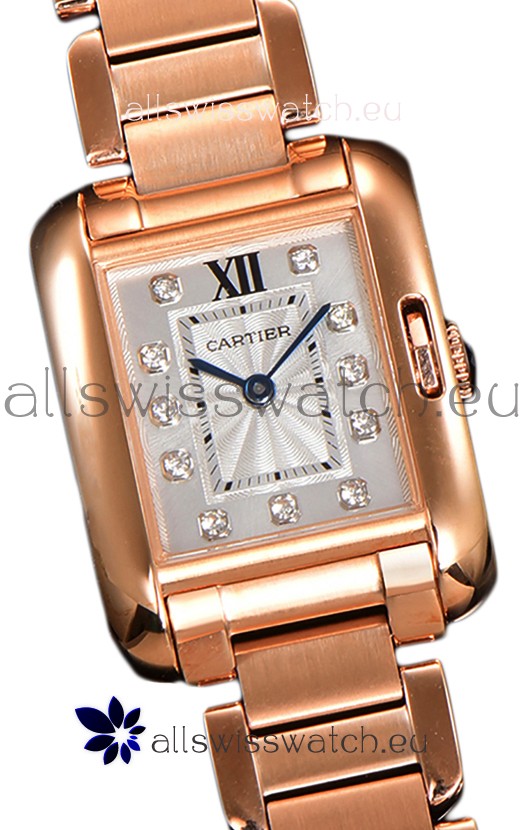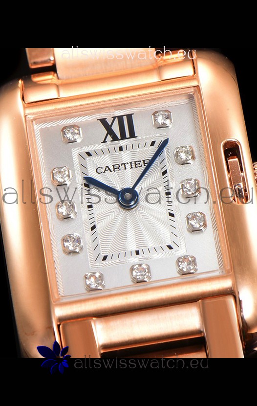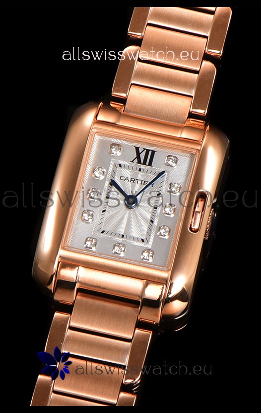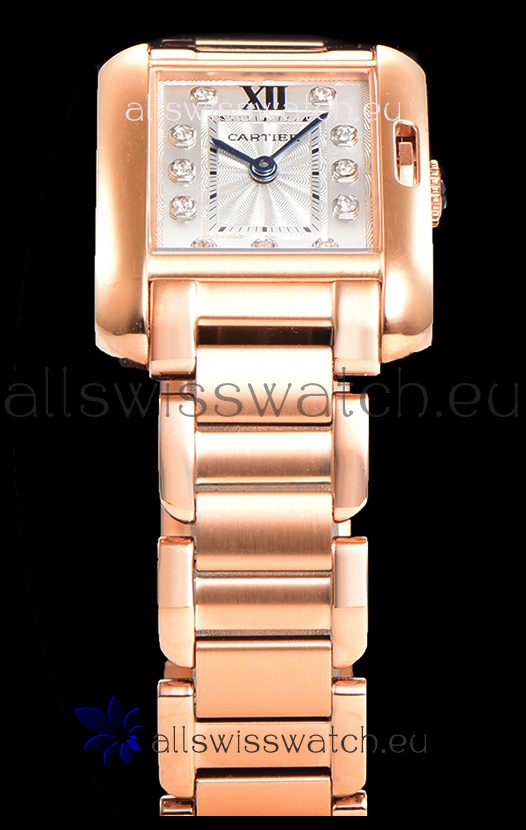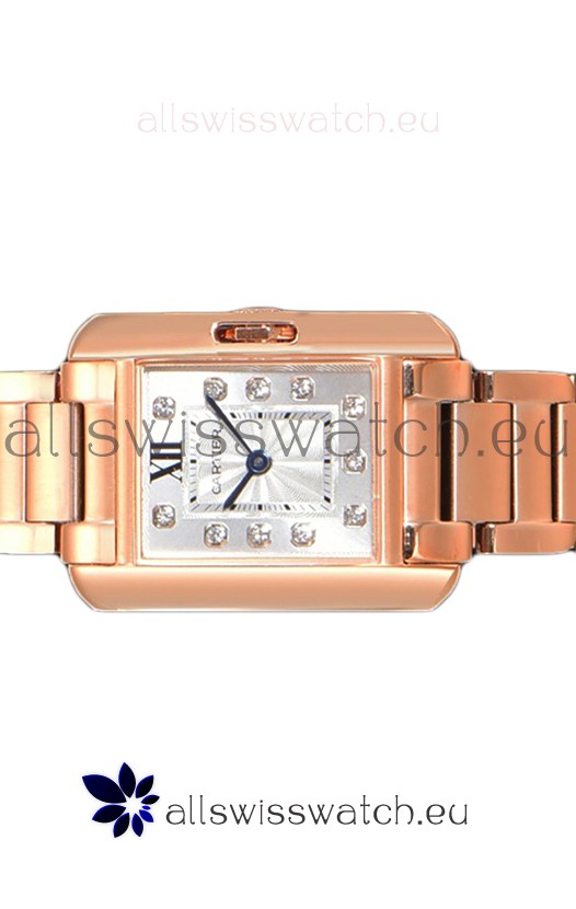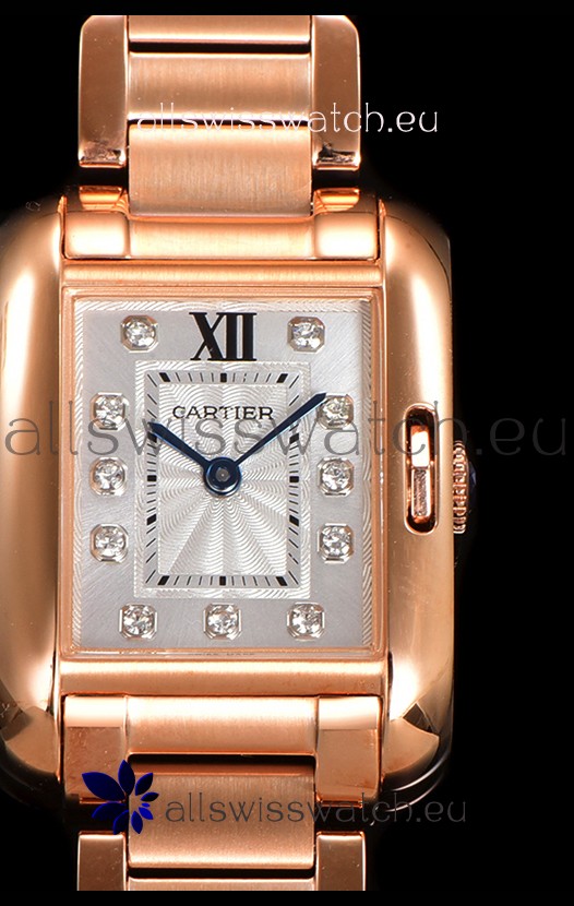 Cartier Tank Anglaise Rose Gold Watch in Steel Strap Diamonds Markers Swiss Quartz Watch 30MM