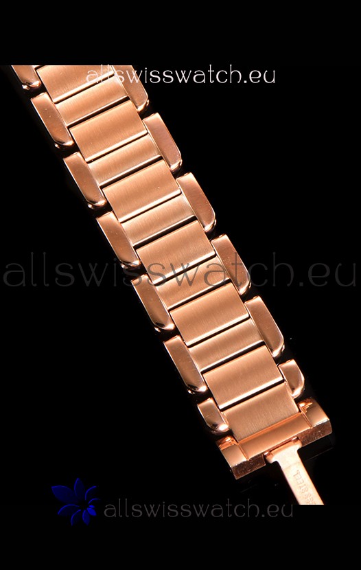 18K Rose Gold Plating on 904L Steel Strap with Cartier Styled Fold Buckle complete with Cartier Markings and Engravings