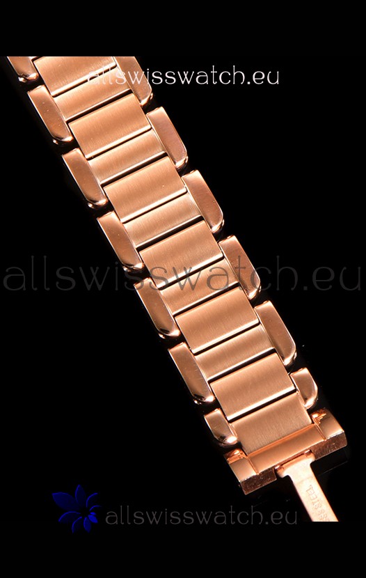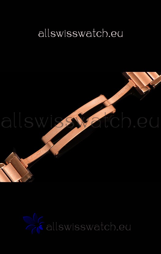 18K Rose Gold Plating on 904L Steel Strap with Cartier Styled Fold Buckle complete with Cartier Markings and Engravings