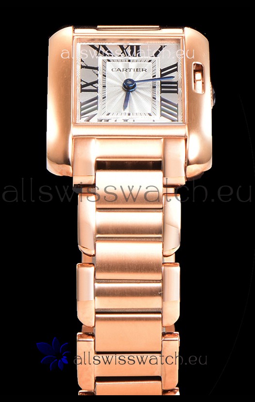 Cartier Tank Anglaise Rose Gold Watch in Steel Strap Swiss Quartz Watch 30MM