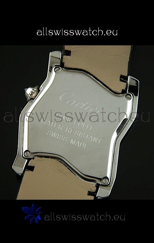Cartier Tank Folle Ladies Replica Watch in Steel Case/Black Strap