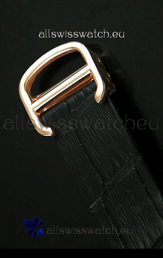 Genuine Leather Strap with Cartier Markings/Engravings and Double Folding Clasp