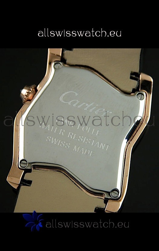 You're reviewing: Cartier Tank Folle Ladies Replica Watch in Yellow Gold Case/Black Strap