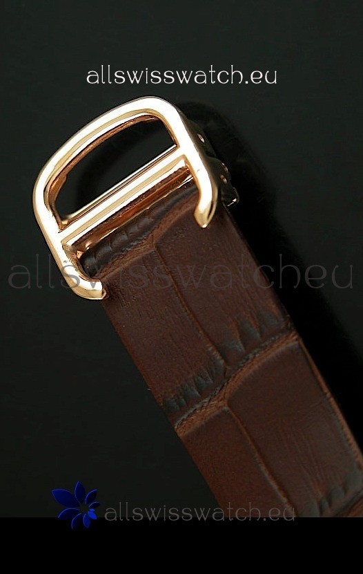 Genuine Leather Strap with Cartier Markings/Engravings and Double Folding Clasp