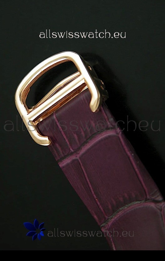 Genuine Leather Strap with Cartier Markings/Engravings and Double Folding Clasp