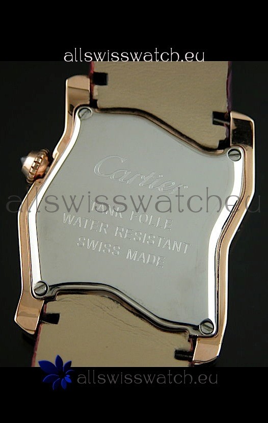 You're reviewing: Cartier Tank Folle Ladies Replica Watch in Yellow Gold Case/Maroon Strap