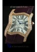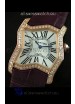 Cartier Tank Folle Ladies Replica Watch in Yellow Gold Case/Maroon Strap