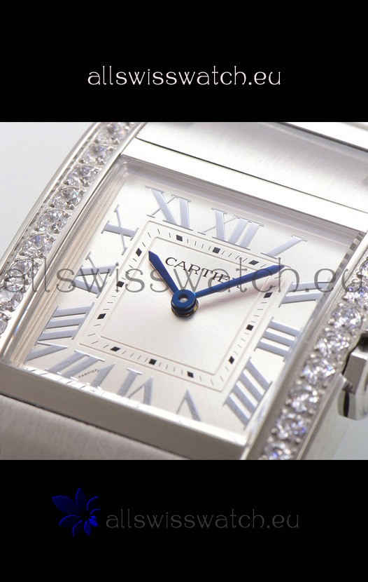 Steel Dial with Roman Hour Numerals. High Quality Cut Diamonds Bezel