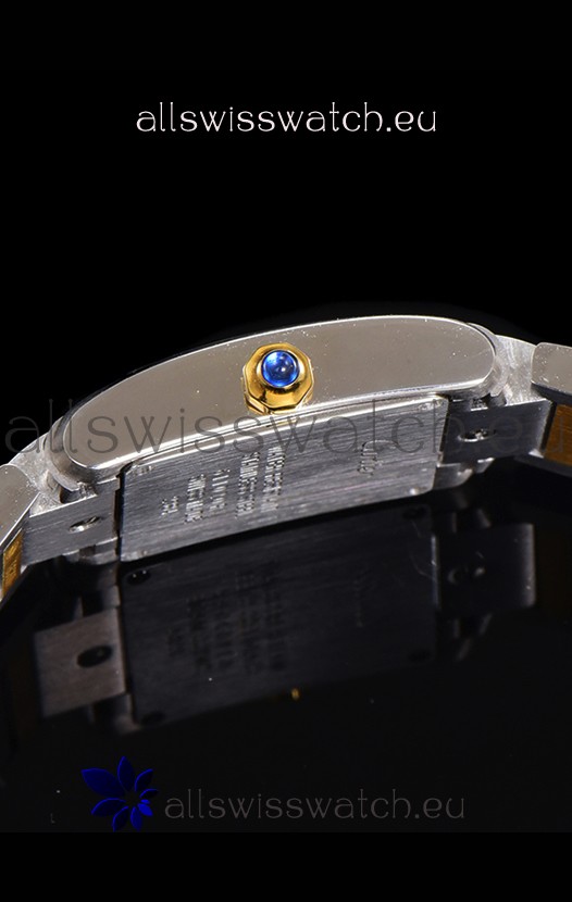 Two Tone 18K Yellow Gold Plating on 904L Stainless Steel Case with solid Case back complete with Cartier Markings and Engravings.