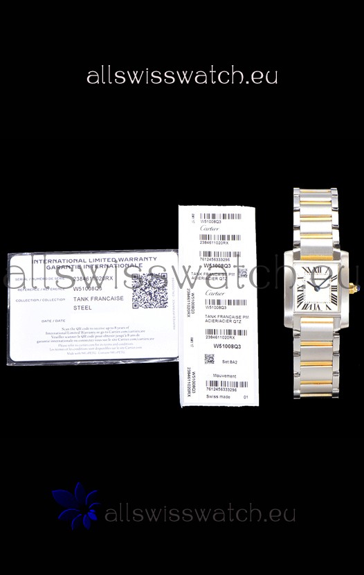 You're reviewing: Cartier Tank Francaise Yellow Gold Two Tone Swiss Quartz Replica Watch 25.70MM