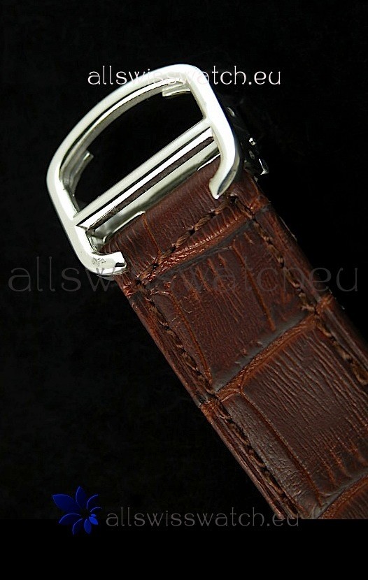 Genuine Leather Strap with Cartier Markings/Engravings and Double Folding Clasp