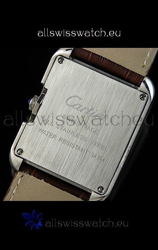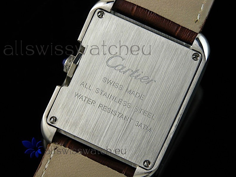 Cartier Tank Ladies Replica Watch in Steel Case/Brown Strap