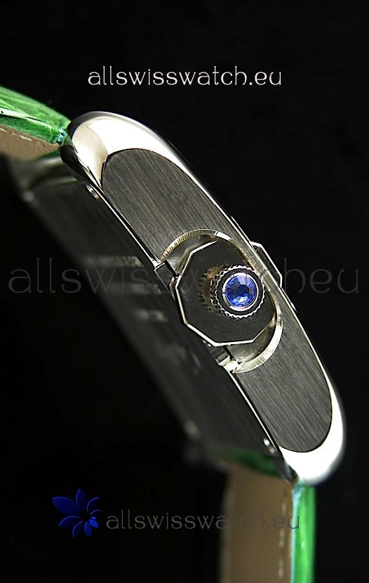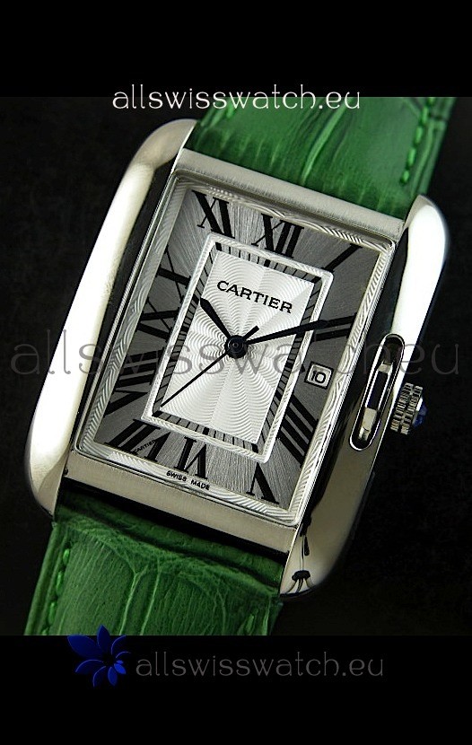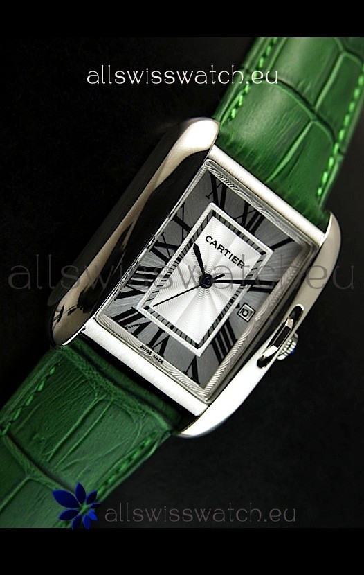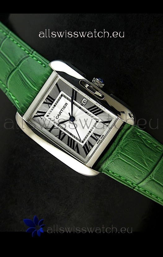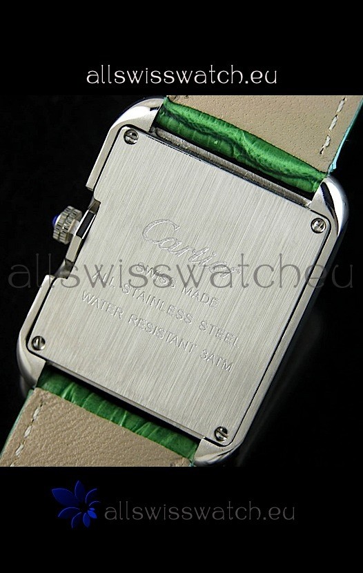 Cartier Tank Ladies Replica Watch in Steel Case/Green Strap