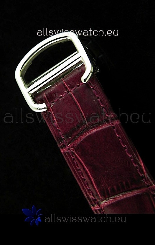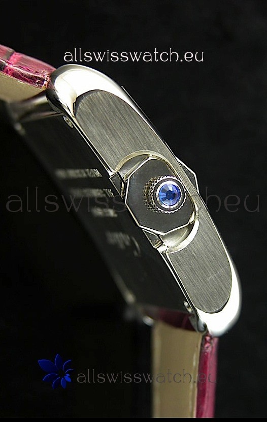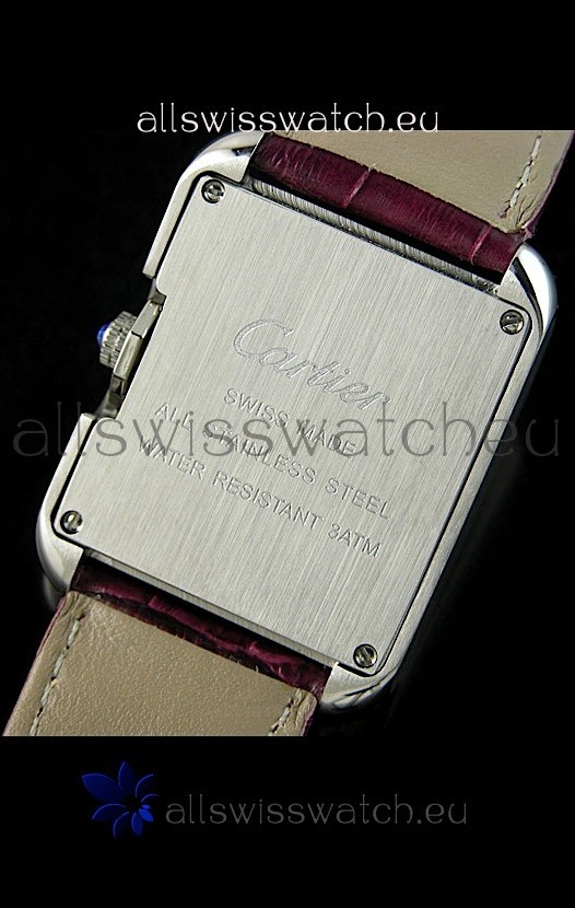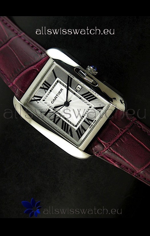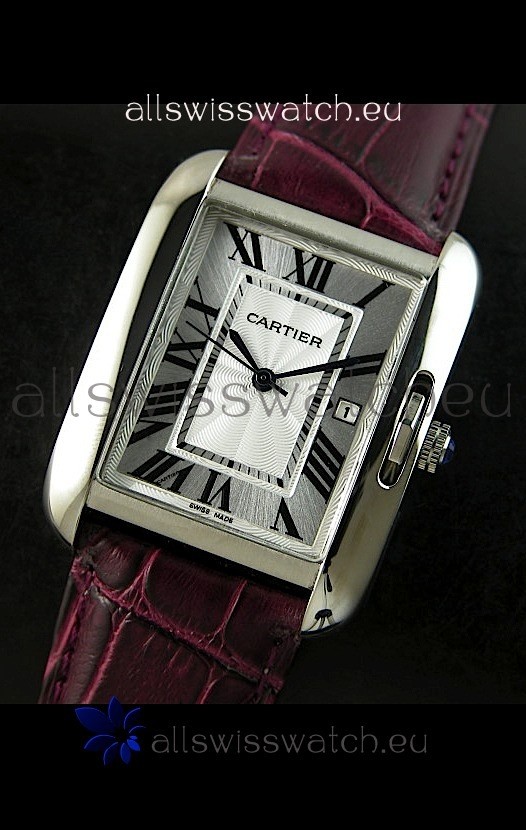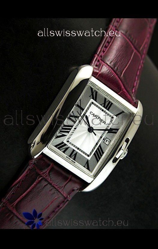 Cartier Tank Ladies Replica Watch in Steel Case/Maroon Strap