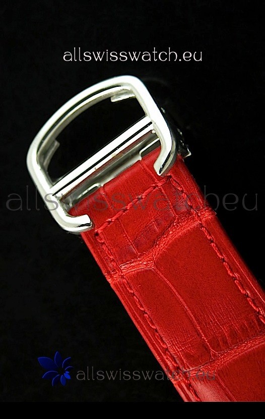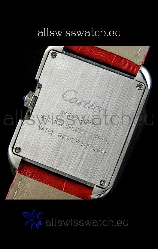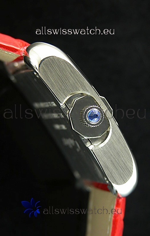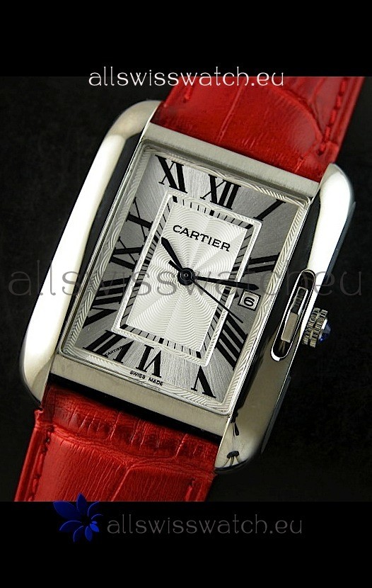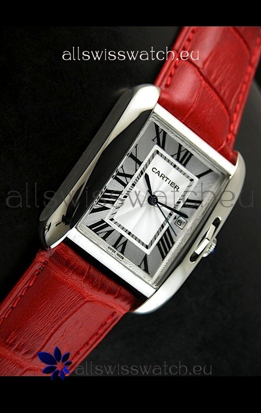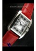 Cartier Tank Ladies Replica Watch in Steel Case/Red Strap