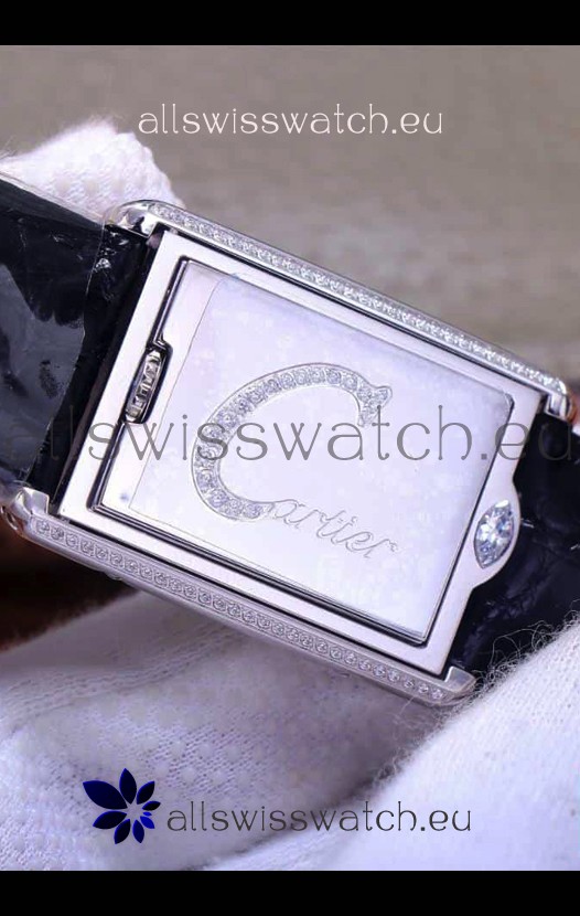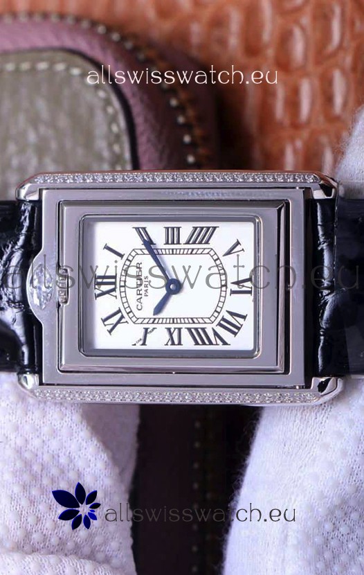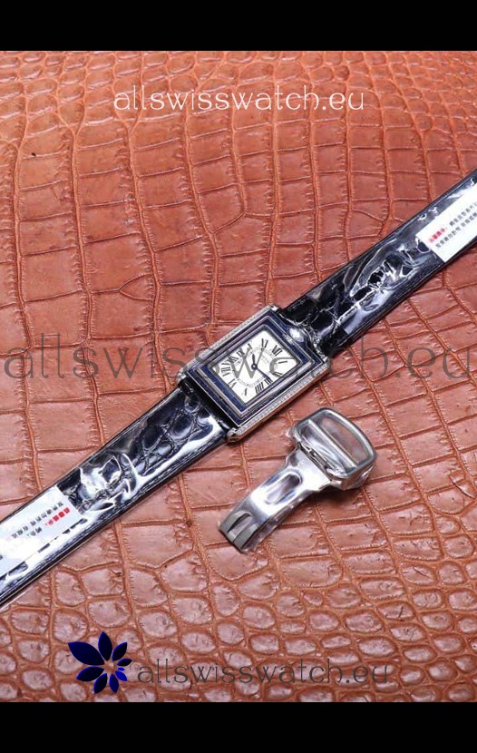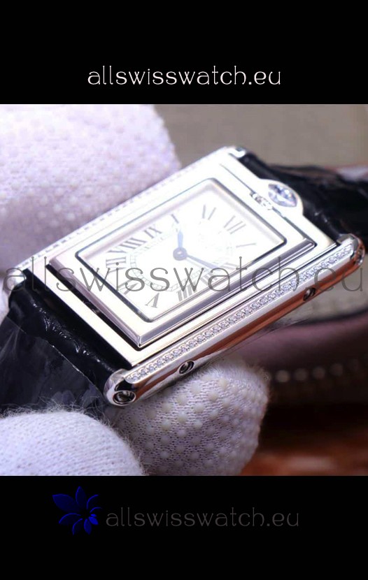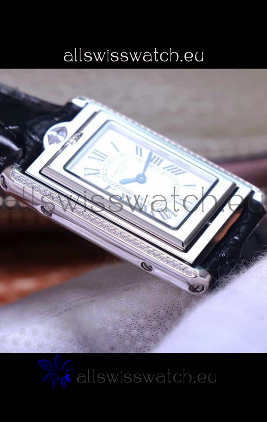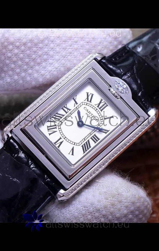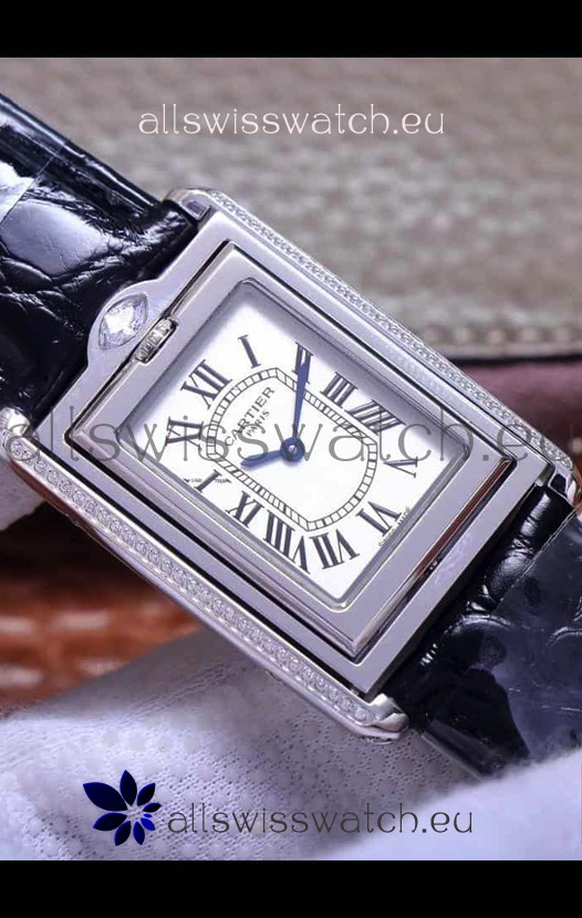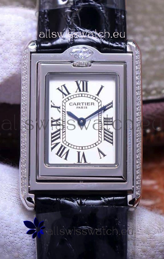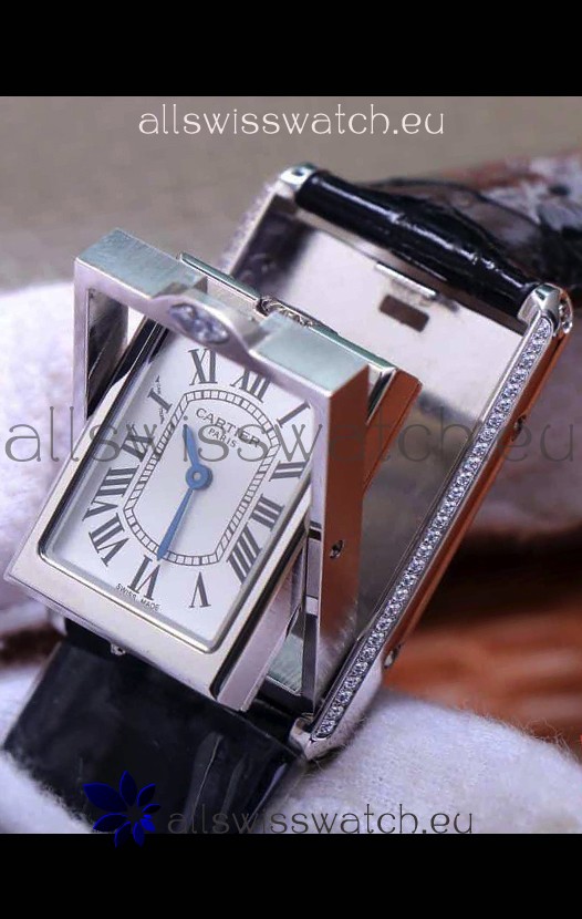 Cartier Tank Reversible Swiss Quartz Replica Watch in Steel Casing - Black Strap