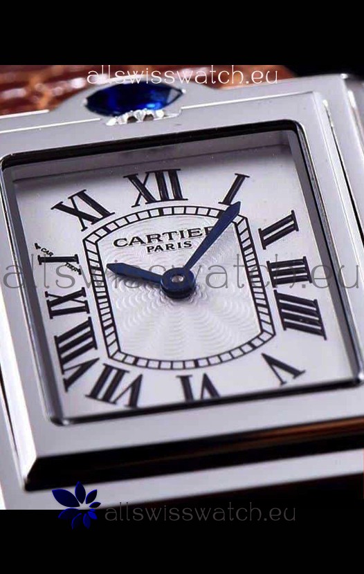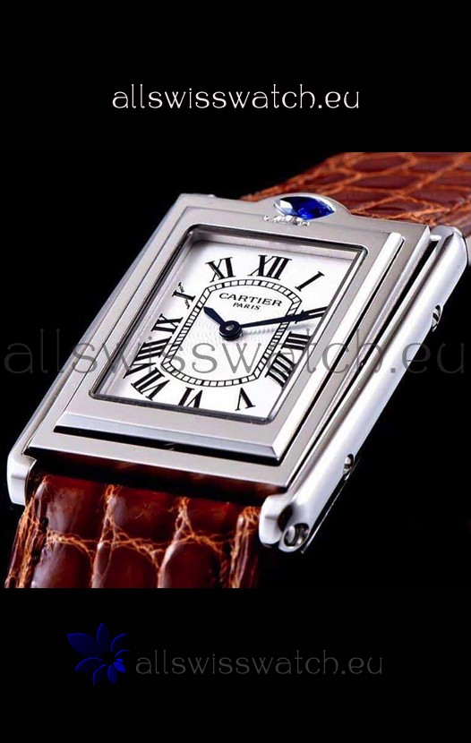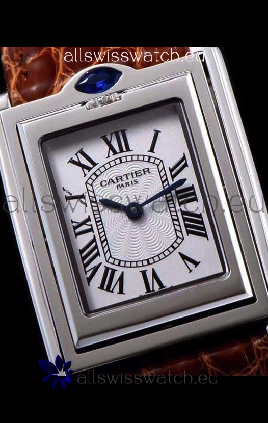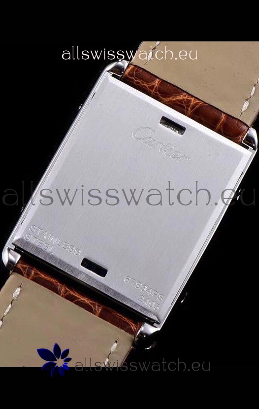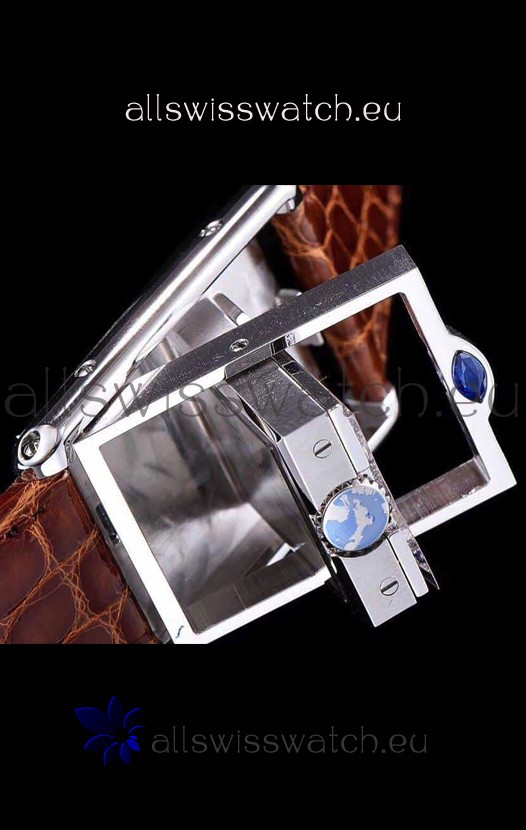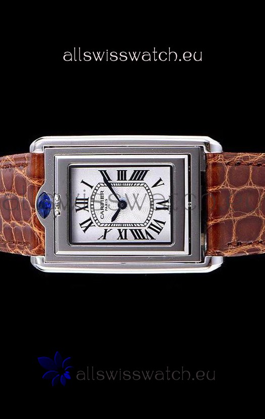 Cartier Tank Reversible Swiss Quartz Replica Watch in Steel Casing - Brown Strap