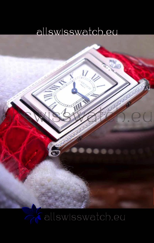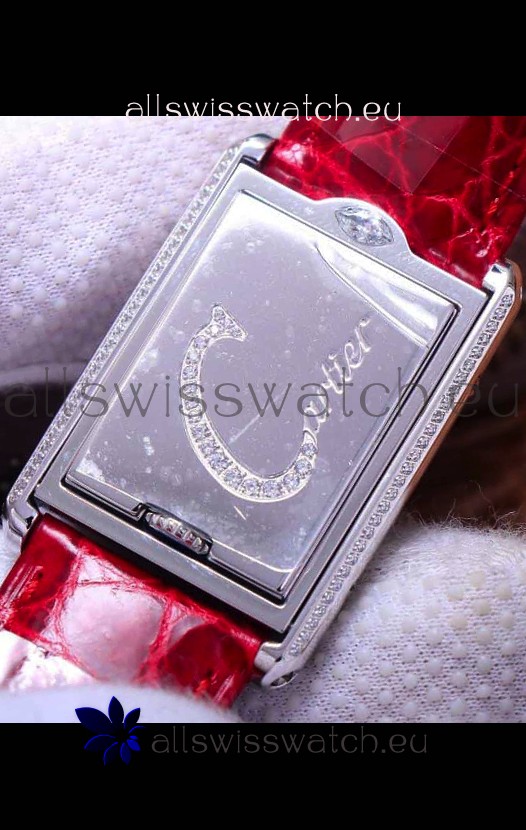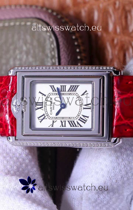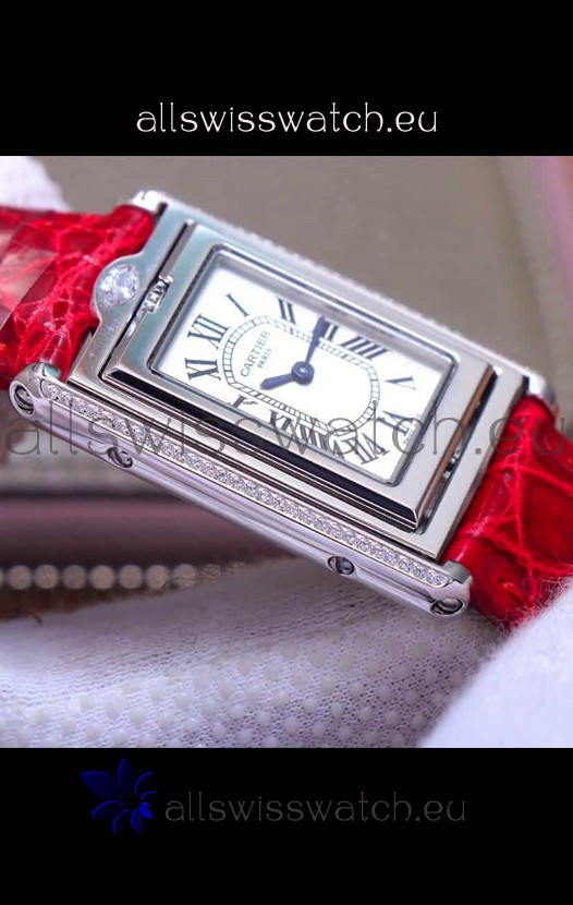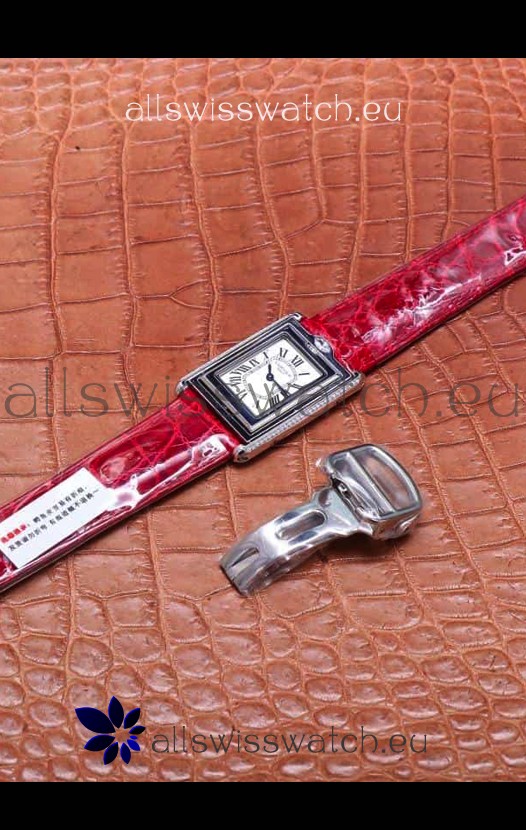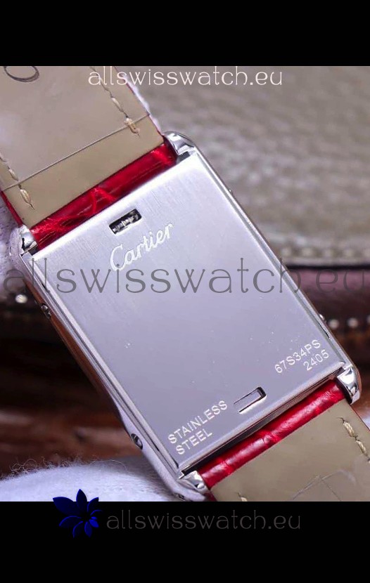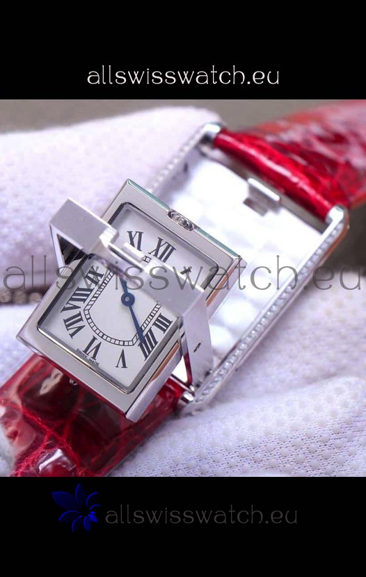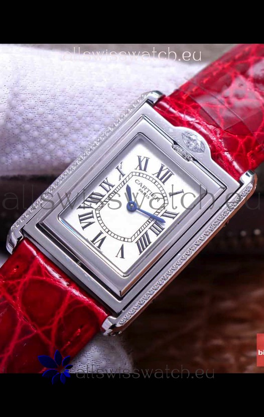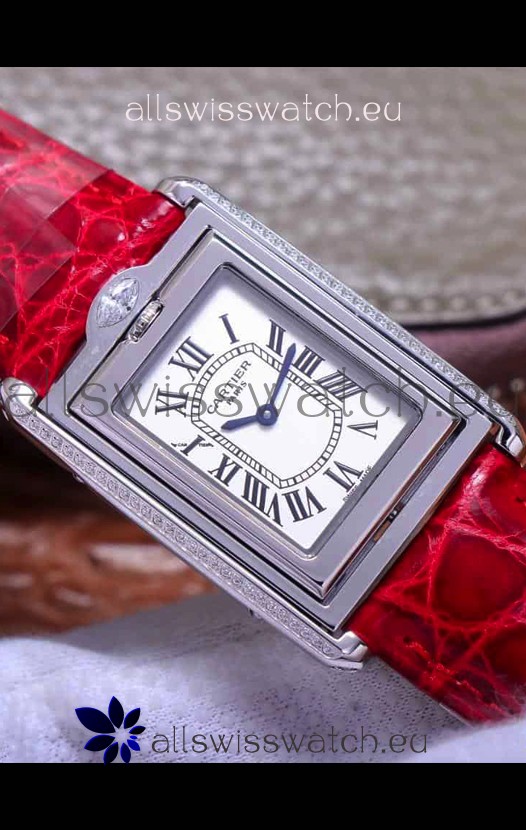 Cartier Tank Reversible Swiss Quartz Replica Watch in Steel Casing - Red Strap