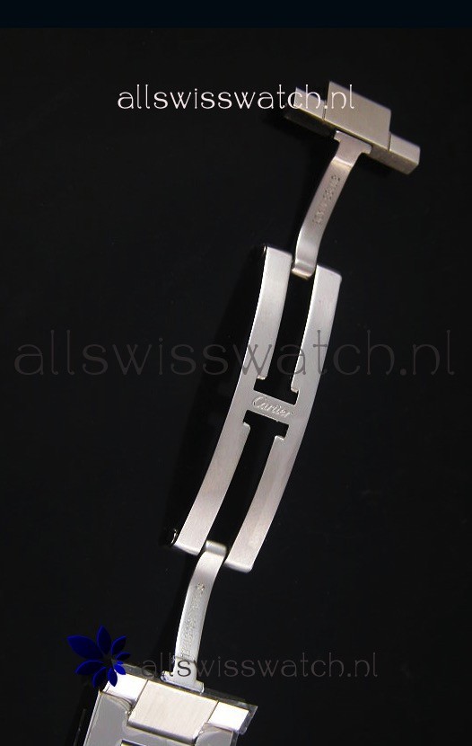 316L Stainless Steel Strap linked with Pins with Dual Folding Clasps complete with Cartier Markings and Engravings