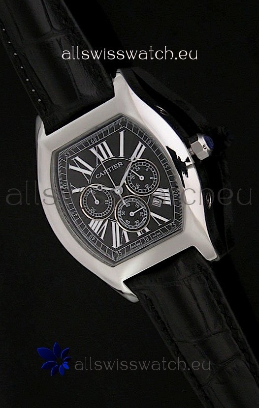 Cartier Tortue Japanese Replica Watch in Black Strap