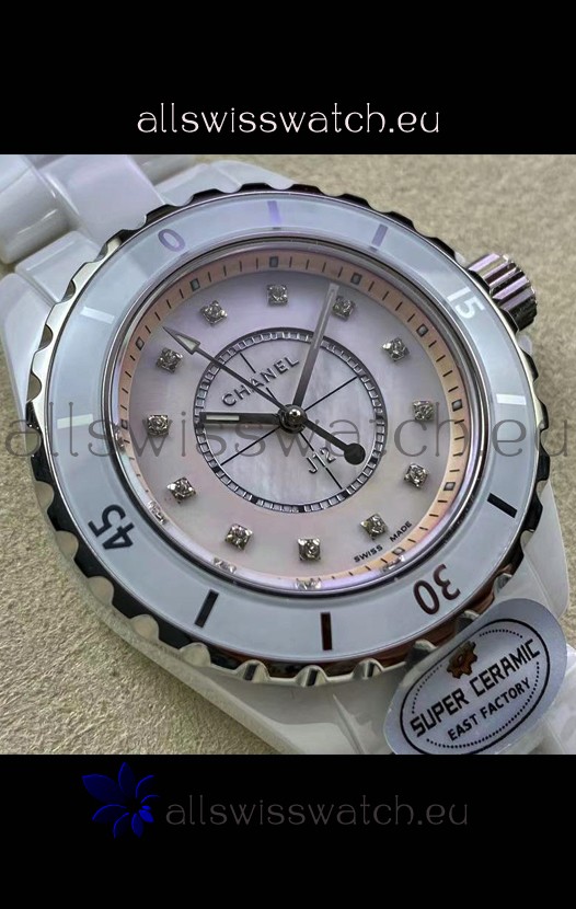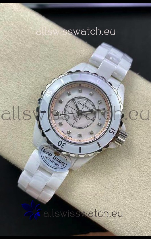 Chanel J12 Ladie s White Ceramic Casing Pearl Dial Watch 1:1 Mirror Replica Watch
