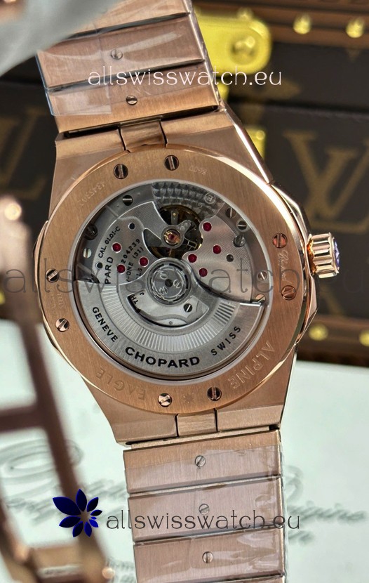 18K Rose Gold Plating on 904L Solid Stainless Steel Casing complete with Chopard Markings/Engravings. Rose Gold Plated Bezel
