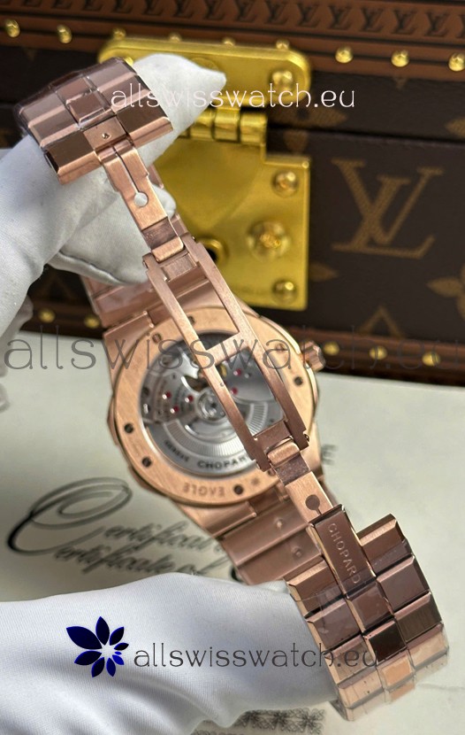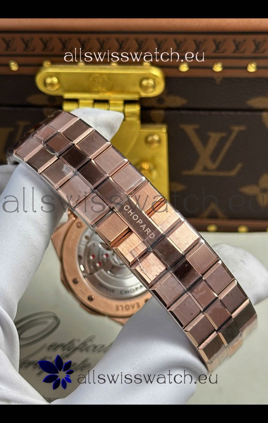 18K Rose Gold Plating on 904L Solid Stainless Steel Strap with Chopard Fold Clasps complete with Chopard Markings and Engravings