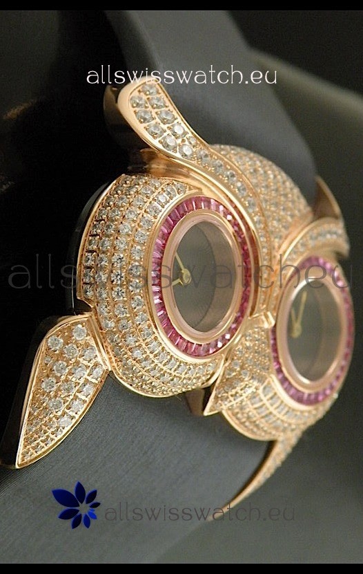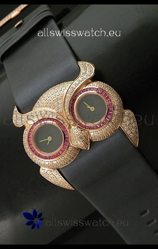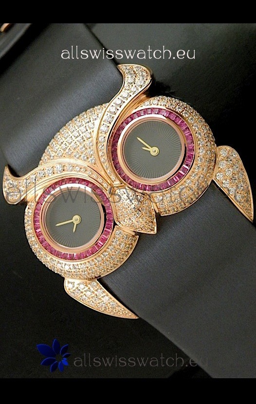Chopard Animal World Ladies Owl Black Full Diamond Watch with Gold Plating