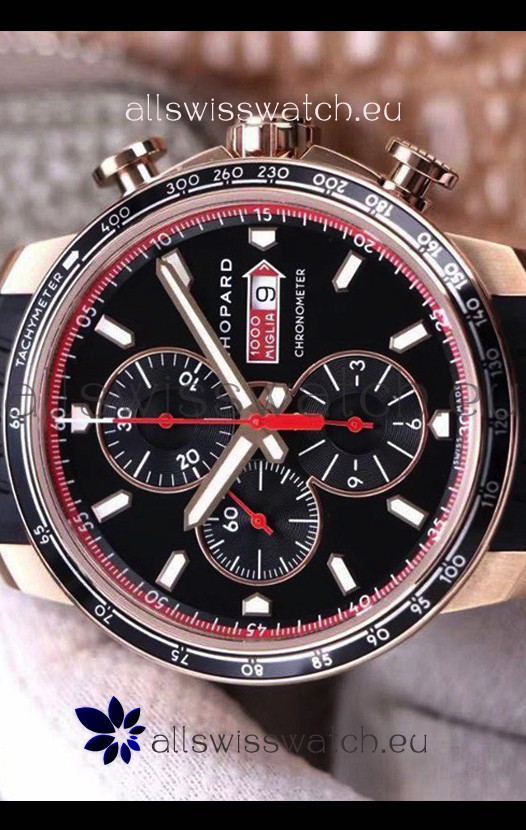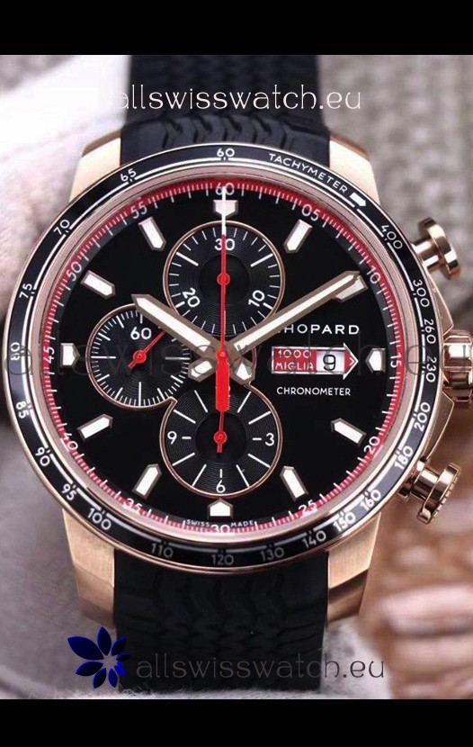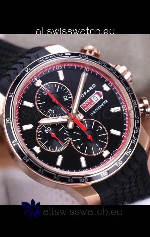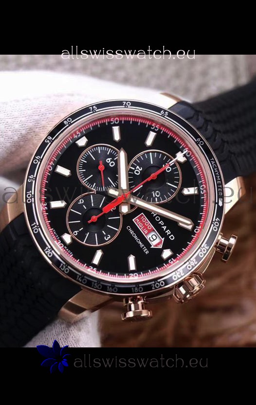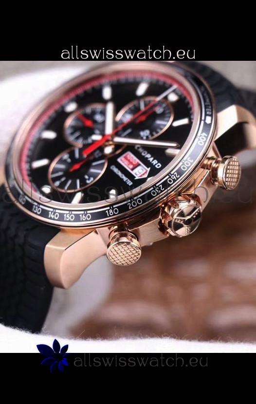 Chopard Classic Racing Chronograph 1:1 Mirror Replica Watch in Rose Gold Casing - Black Dial