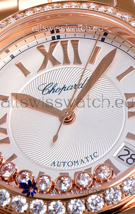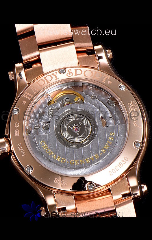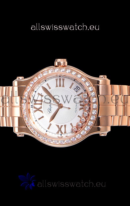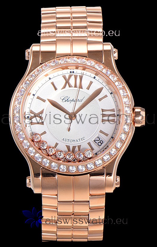 You're reviewing: Chopard Happy Sport 1:1 Mirror Swiss Automatic Replica Watch 36MM in Rose Gold Casing White Dial