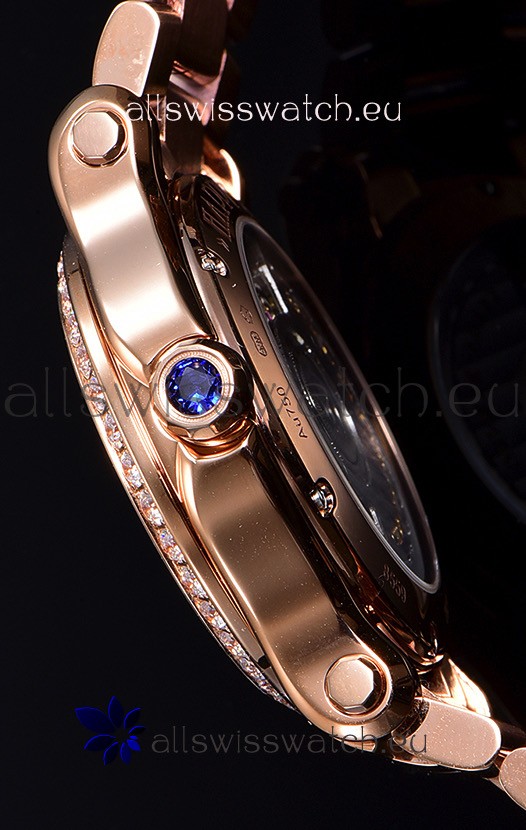 18K Rose Gold Plating on 904L Stainless Steel Casing with complete with Chopard Markings as per the Originals.