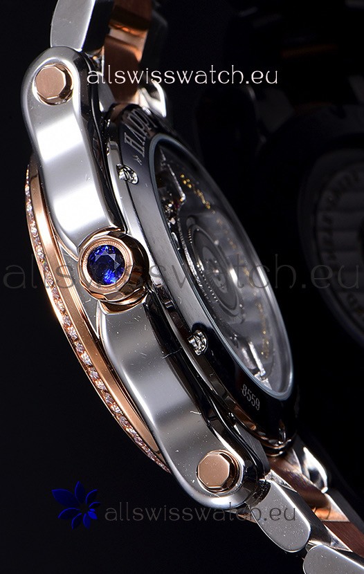 Two Toned 18K Rose Gold Plating on 904L Stainless Steel Casing with complete with Chopard Markings as per the Originals.