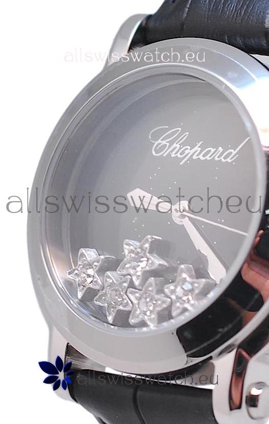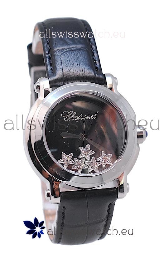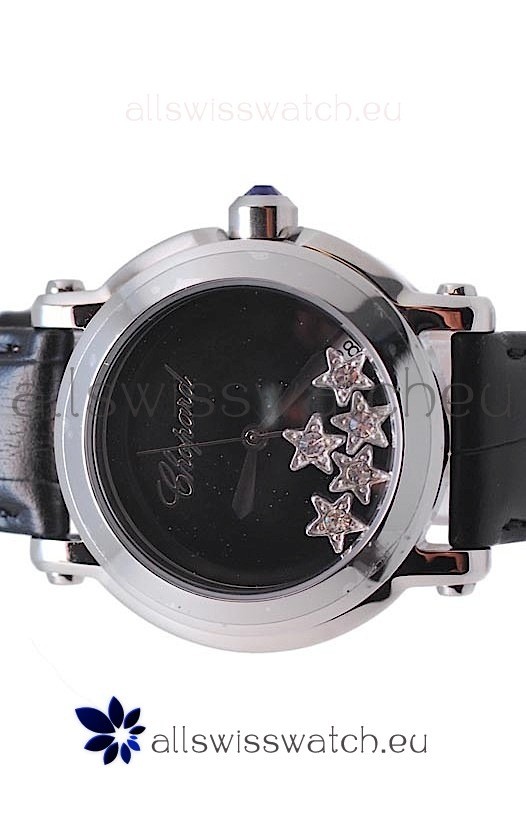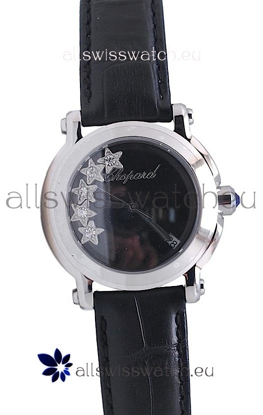 Watch name: Chopard Happy Sport Star Shaped Diamonds Swiss Watch in Black Strap