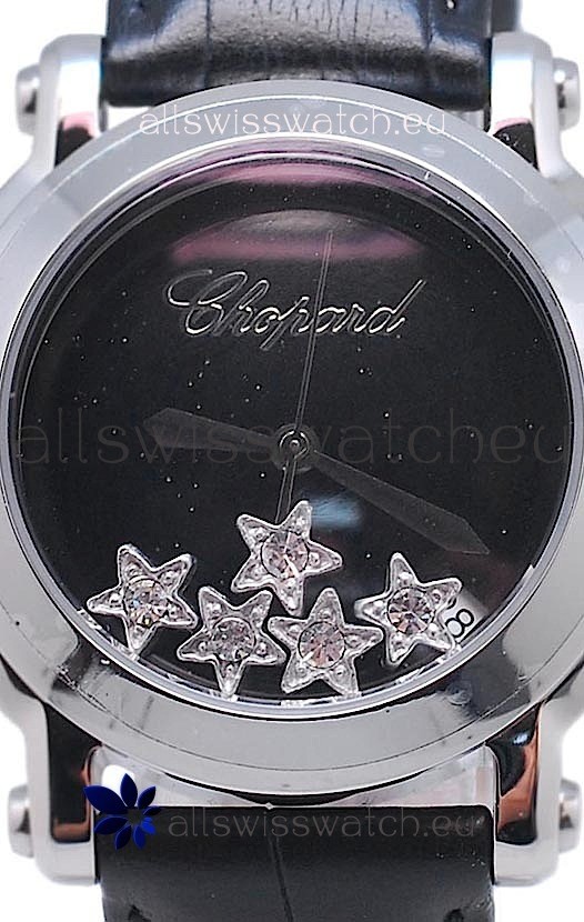 Chopard Happy Sport Star Shaped Diamonds Swiss Watch in Black Strap